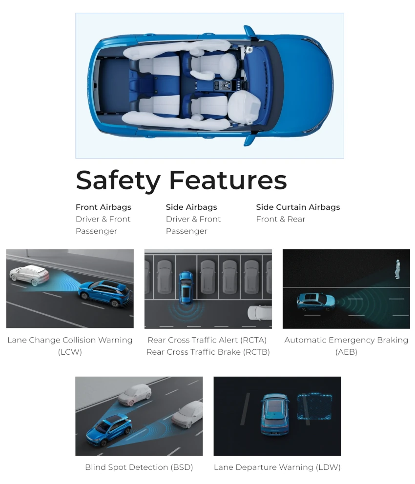 The headlights, echoing with the continuous taillights, have a wider beam of light exposure which greatly improves the visibility and night driving experience. In conjunction with the unique dynamic steering light, BYD ATTO 3 keeps you safer than ever.